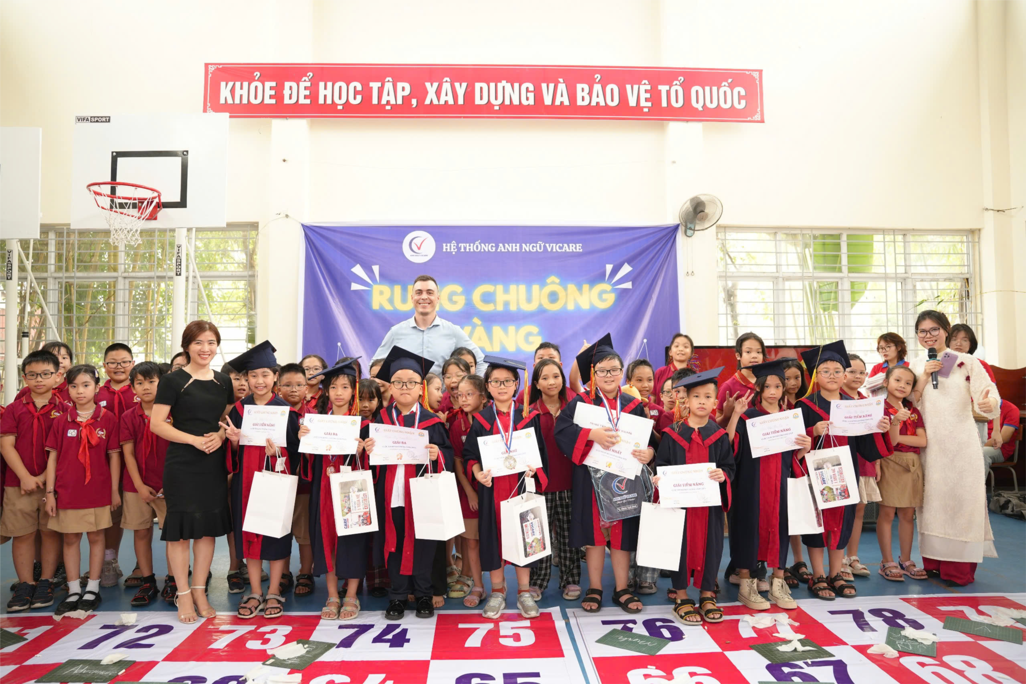 Với tất cả tâm huyết dành cho thế hệ trẻ, cuộc thi “Rung Chuông Vàng 2025” được tổ chức bởi Hệ thống ANH NGỮ VICARE tại Tiểu học NÔNG NGHIỆP không chỉ là một sân chơi kiến thức đơn thuần, mà còn là nơi các em được tỏa sáng – thể hiện bản lĩnh, phản xạ tư duy nhanh nhạy và tinh thần học hỏi không ngừng.