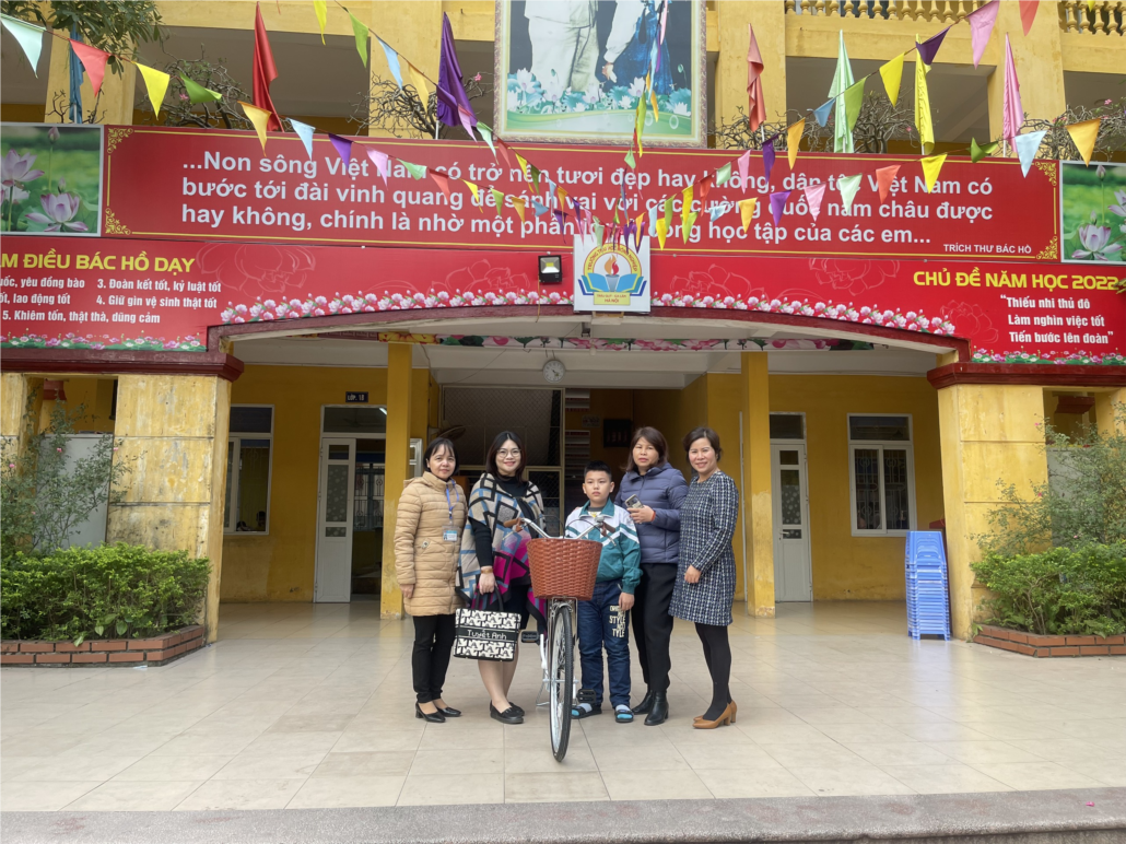 Đồng hành cùng học sinh nghèo đến trường, với tấm lòng hảo tâm của bà Nguyễn Thị Tuyết hiện đang công tác tại công ty Việt Hàn, ngày 2/12/2022 trường Tiểu học Nông Nghiệp phối hợp tổ chức trao tặng xe đạp cho học sinh Lê Quốc Long - lớp 5D - có hoàn cảnh khó khăn có ý thức vươn lên trong học tập và