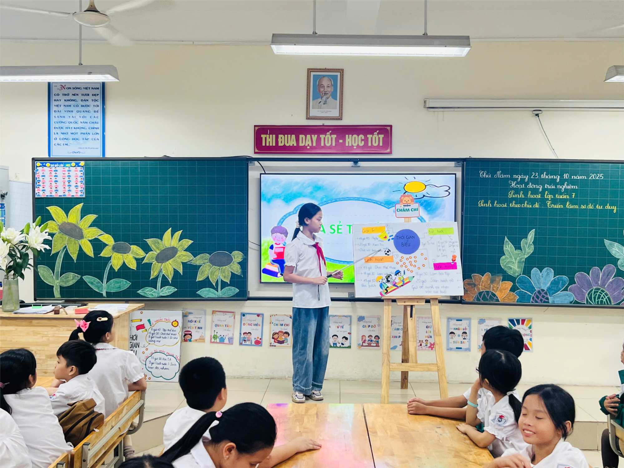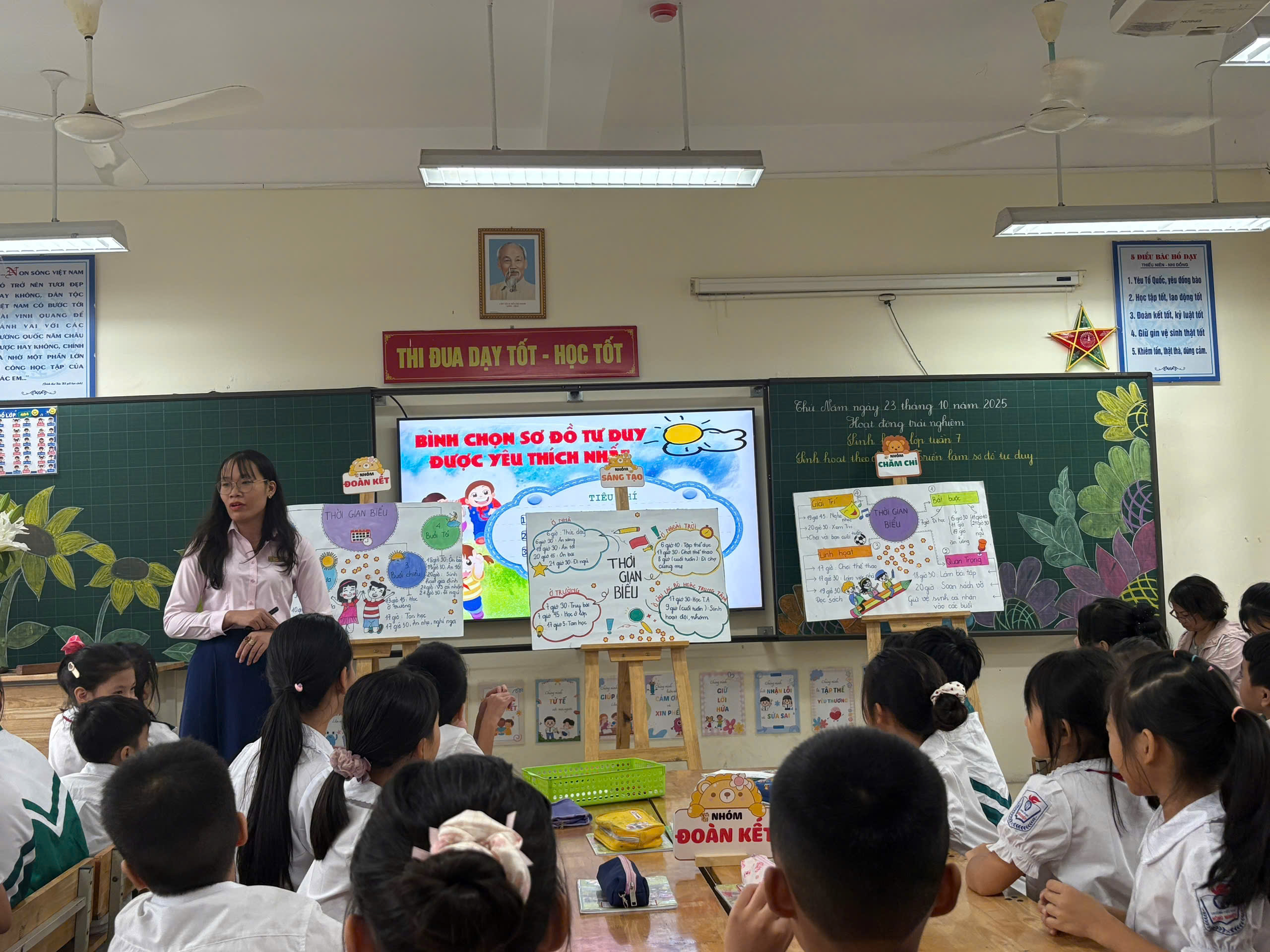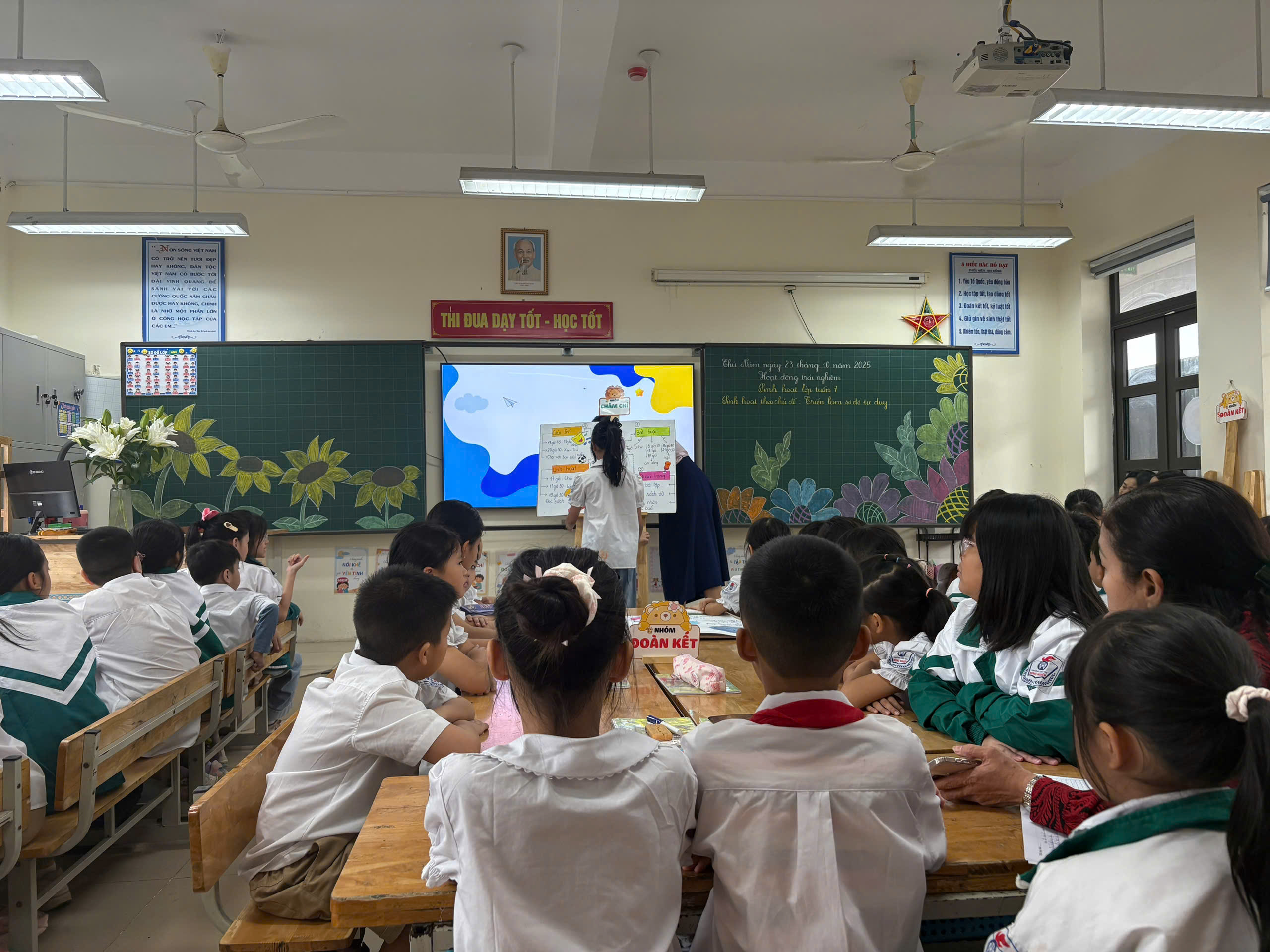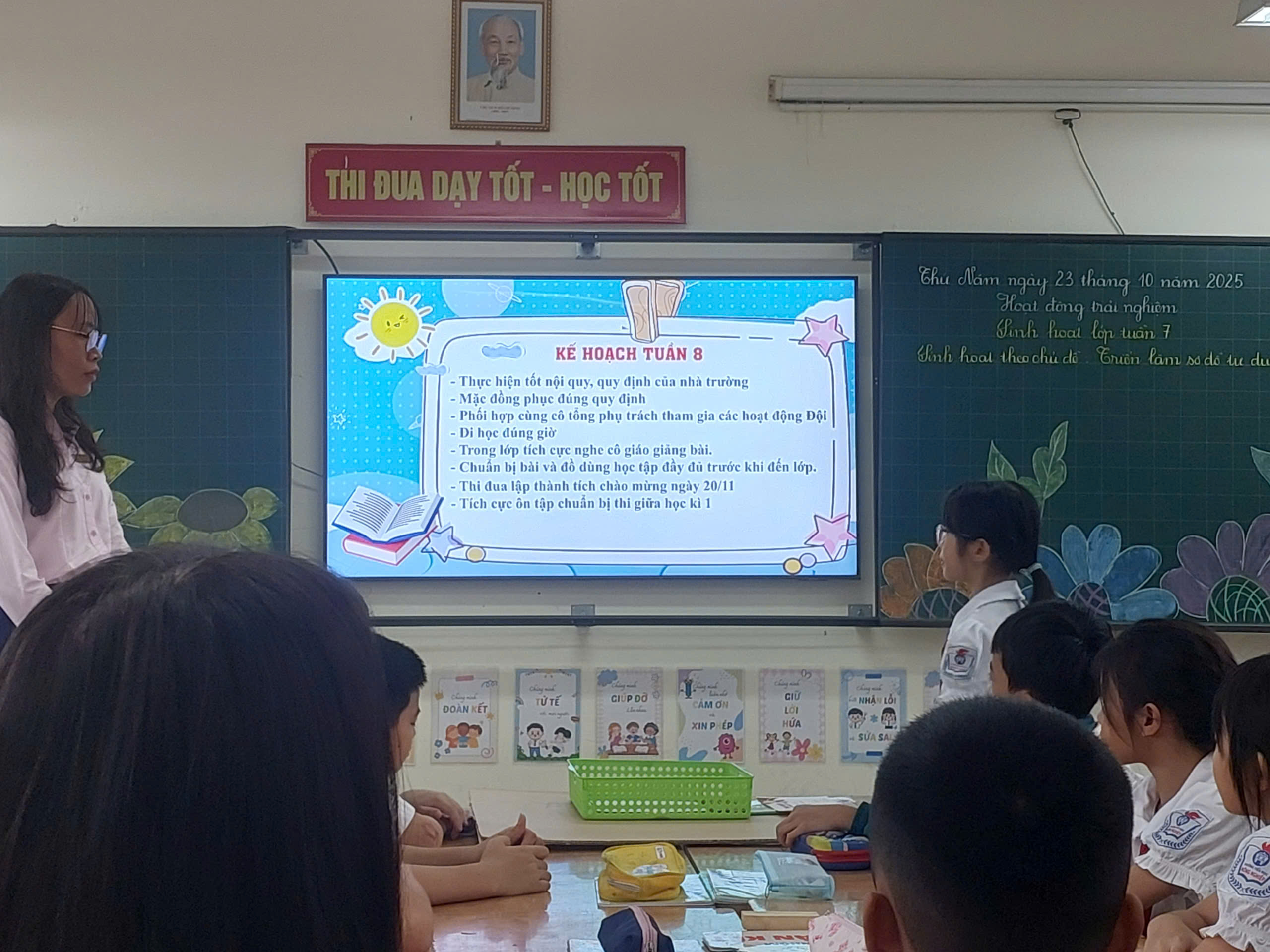 Cũng trong sáng ngày 23 tháng 10 năm 2025, cô giáo Dương Thu Hà đã thực hiện tiết Hội giảng môn Hoạt động trải nghiệm – Tuần 7: Bài Sinh hoạt lớp tuần 7 tại lớp 4A4, với sự tham gia của 49 học sinh.