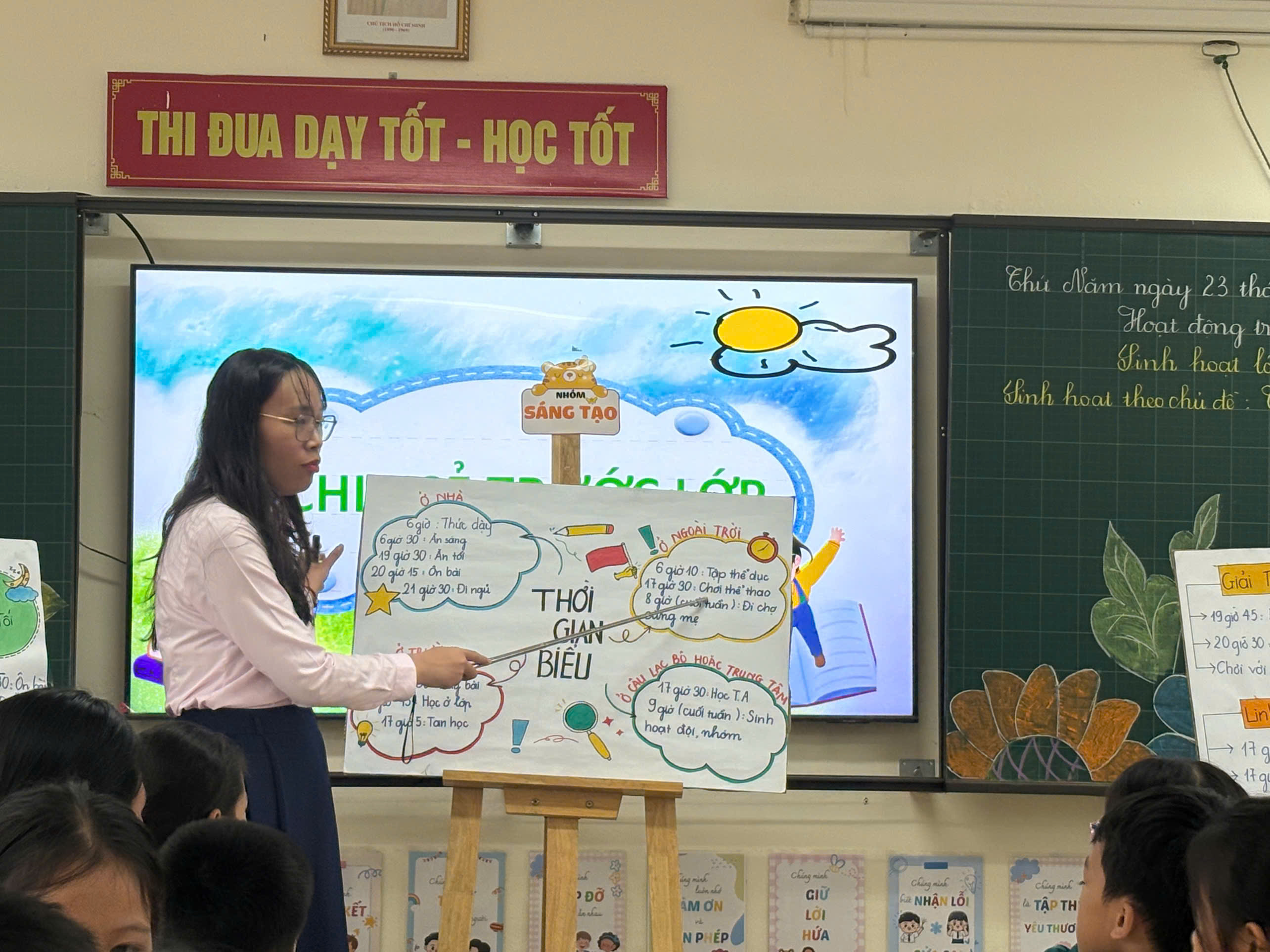 Trong tiết học, cô Hà đã tổ chức linh hoạt, khoa học các hoạt động học tập, tạo cơ hội cho học sinh được thể hiện năng lực cá nhân và tinh thần làm việc nhóm. Các em hào hứng, tự tin thuyết trình sản phẩm của nhóm mình, biết lắng nghe, chia sẻ và học hỏi lẫn nhau. Không khí lớp học sôi nổi, thân thiện, đầy sáng tạo và niềm vui học tập.
