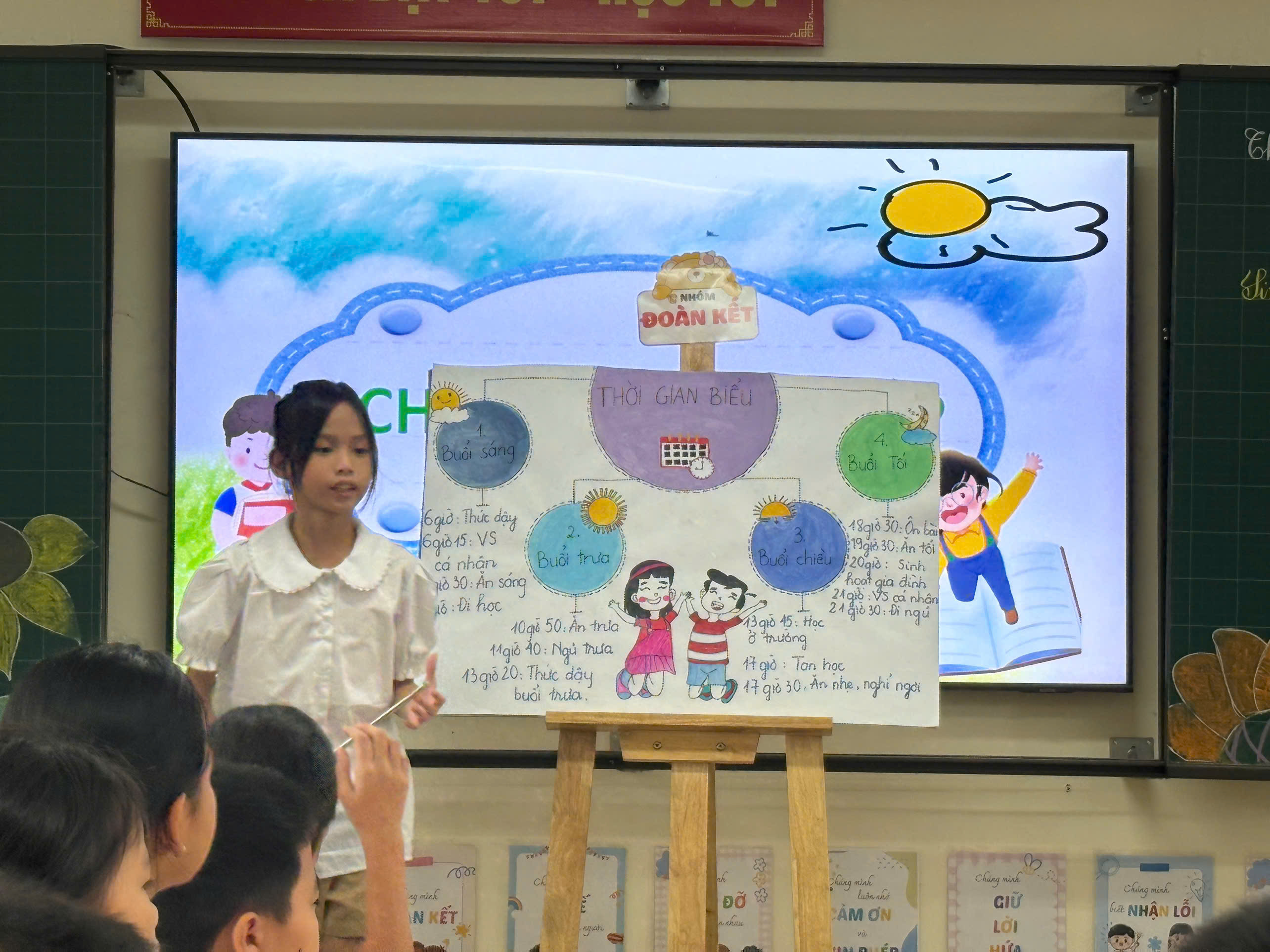 Chủ đề sinh hoạt của tiết học là “Triển lãm sơ đồ tư duy” – một hoạt động sáng tạo, giúp học sinh rèn luyện kỹ năng trình bày ý tưởng, hợp tác nhóm và thể hiện tư duy logic qua việc thiết kế, giới thiệu các sơ đồ tư duy của mình.