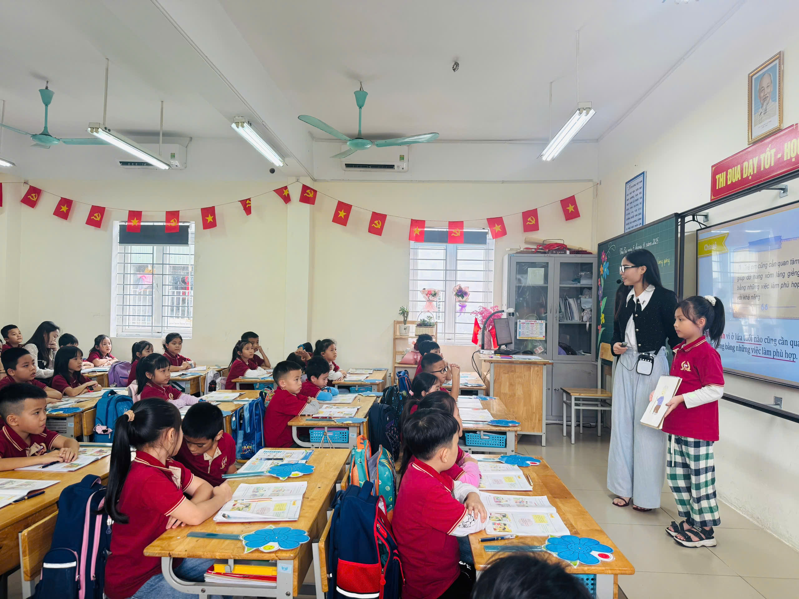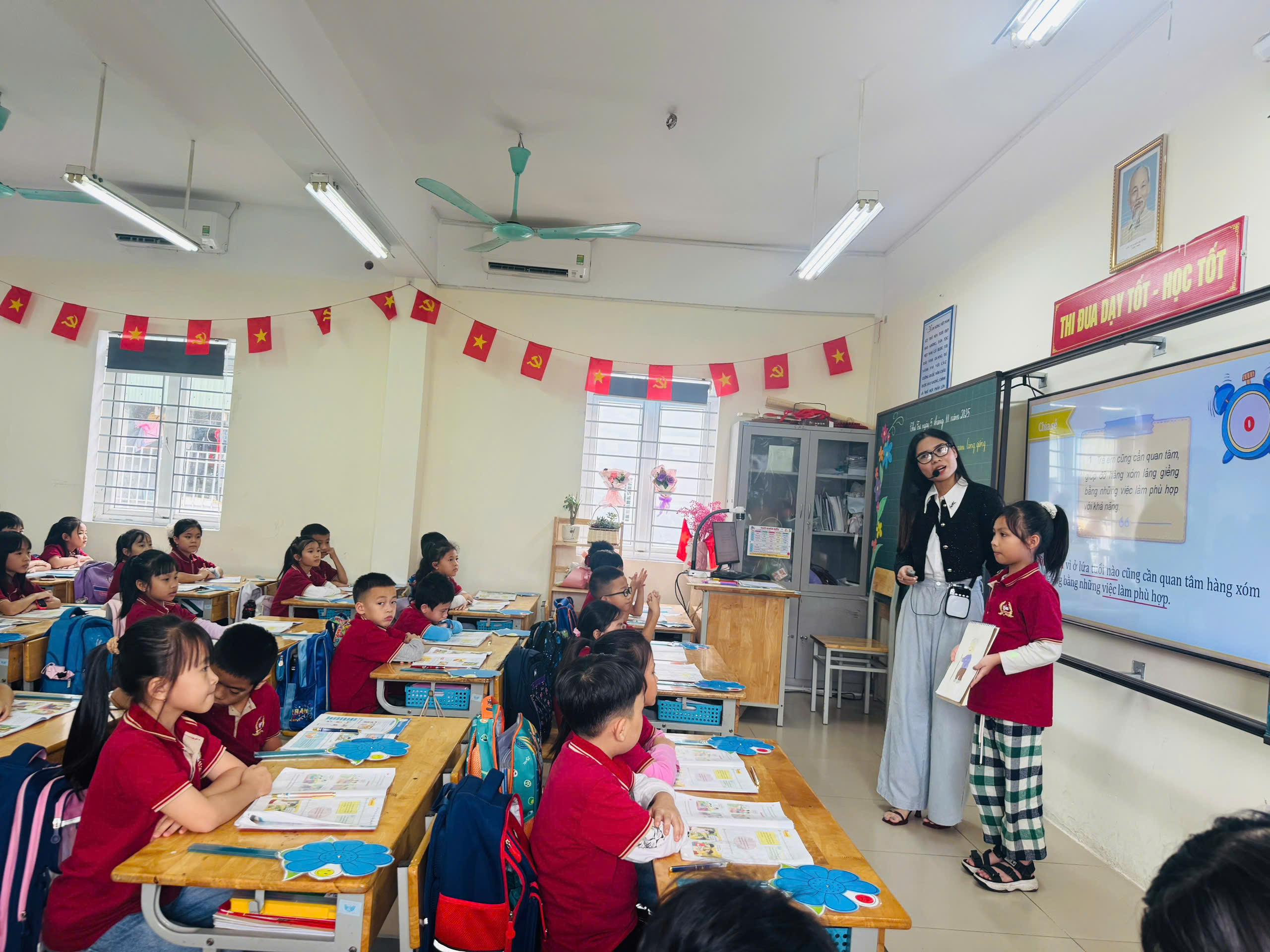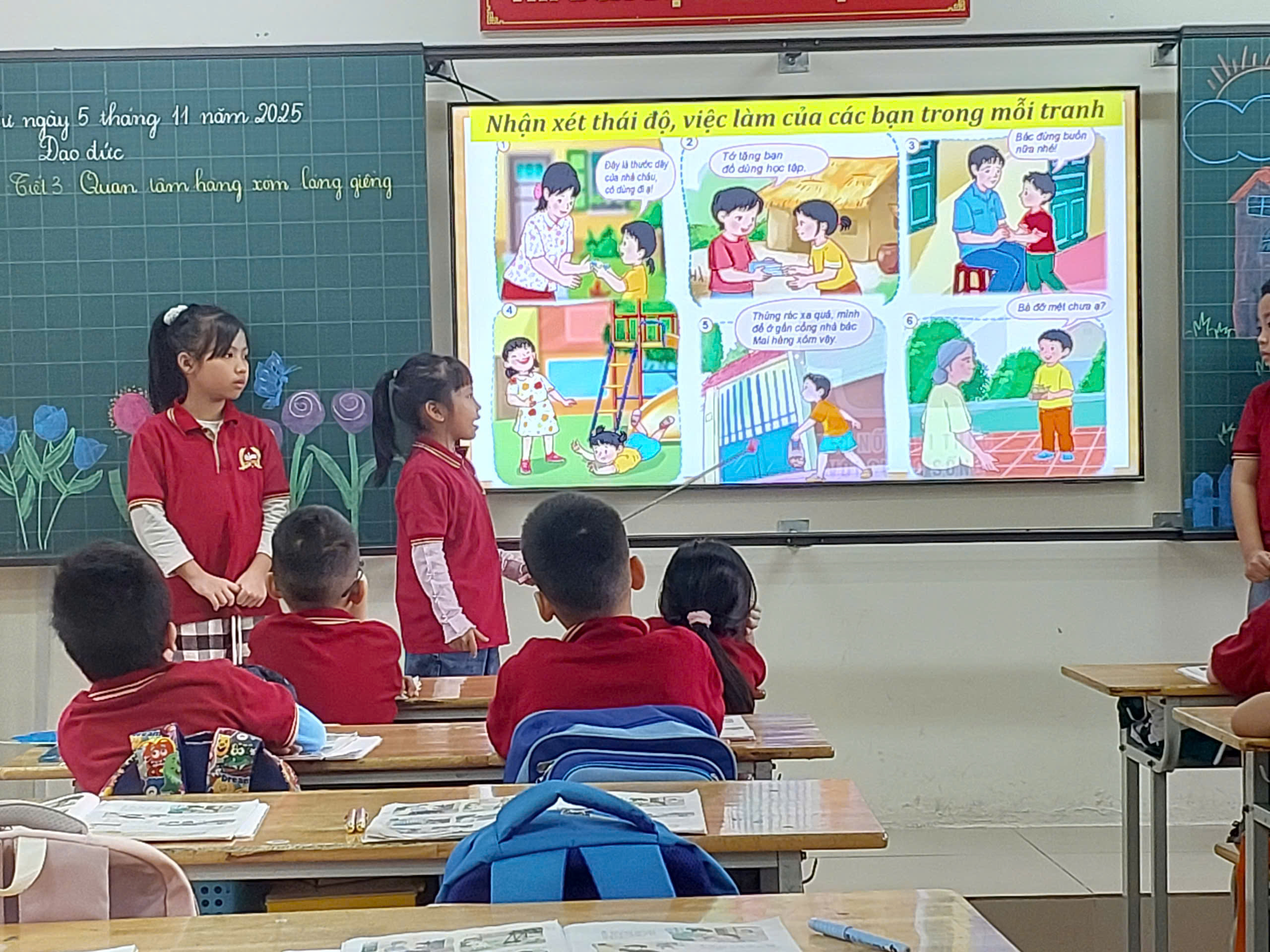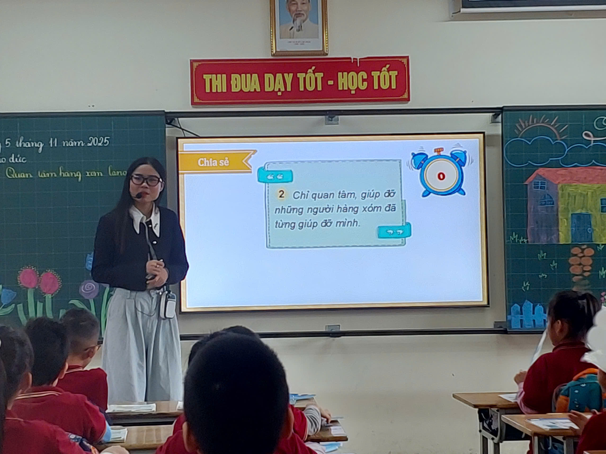 Sáng ngày 05/11/2025, cô giáo Nguyễn Thùy Dương đã thực hiện tiết Hội giảng môn Đạo đức – Bài 3. Tiết 3. Quan tâm hàng xóm láng giềng với sự tham gia của hơn 40 học sinh lớp 3A5. Đến dự tiết Hội giảng có các thầy cô trong Ban giám khảo, cùng các thầy cô trong tổ chuyên môn khối 3. Xin chúc mừng cô trò lớp 1A3 đã hoàn thành xuất sắc tiết Hội giảng.