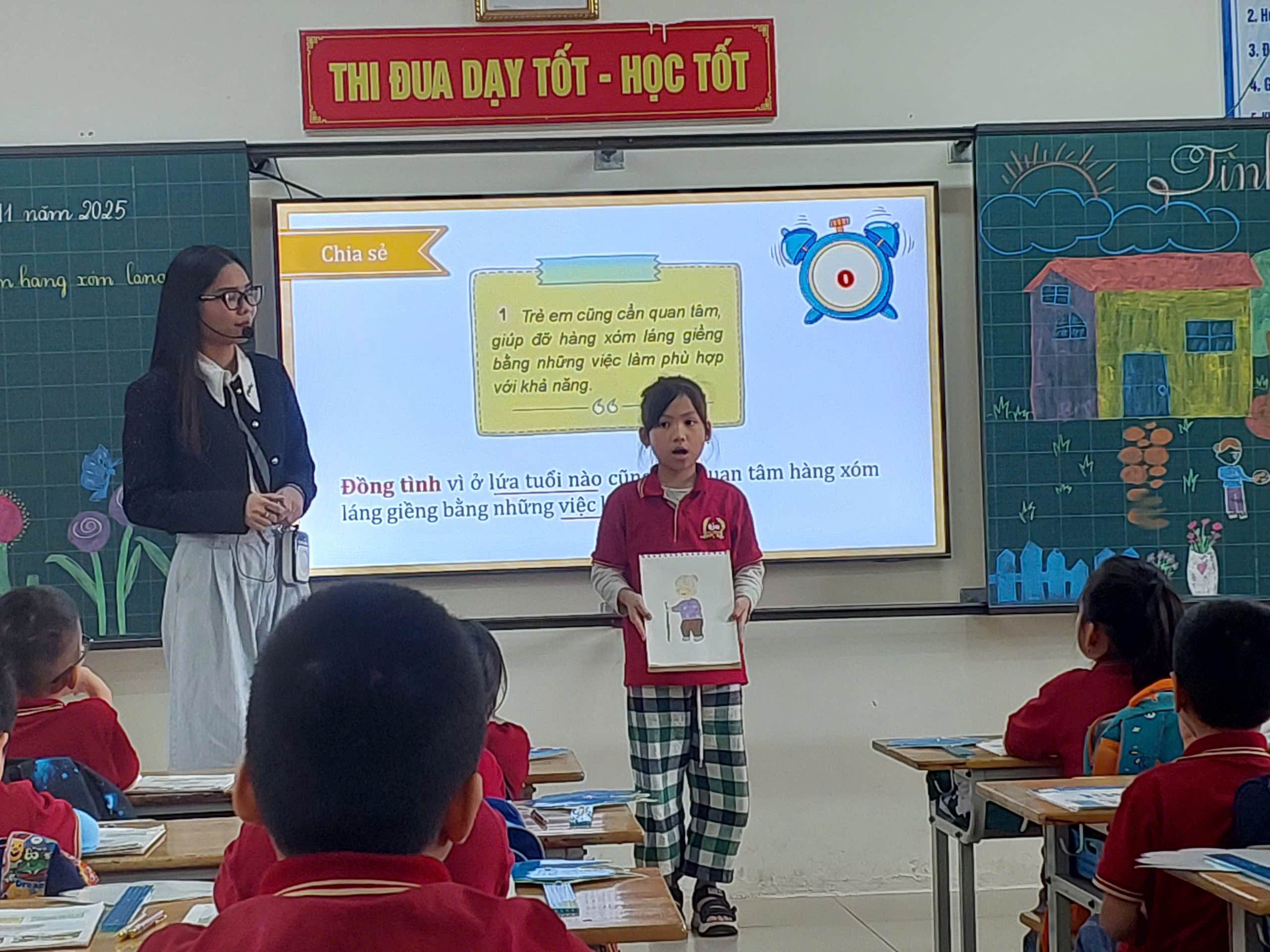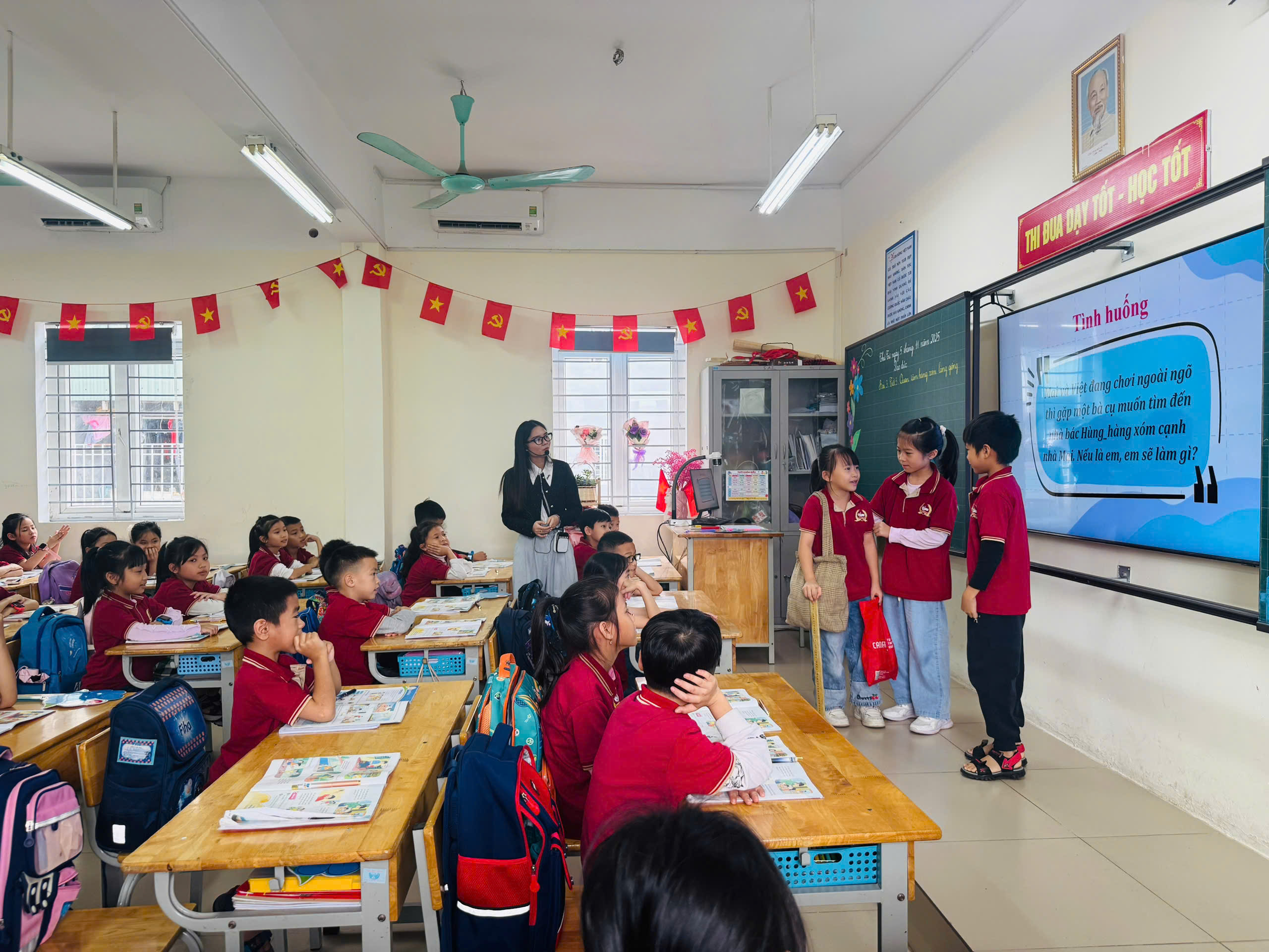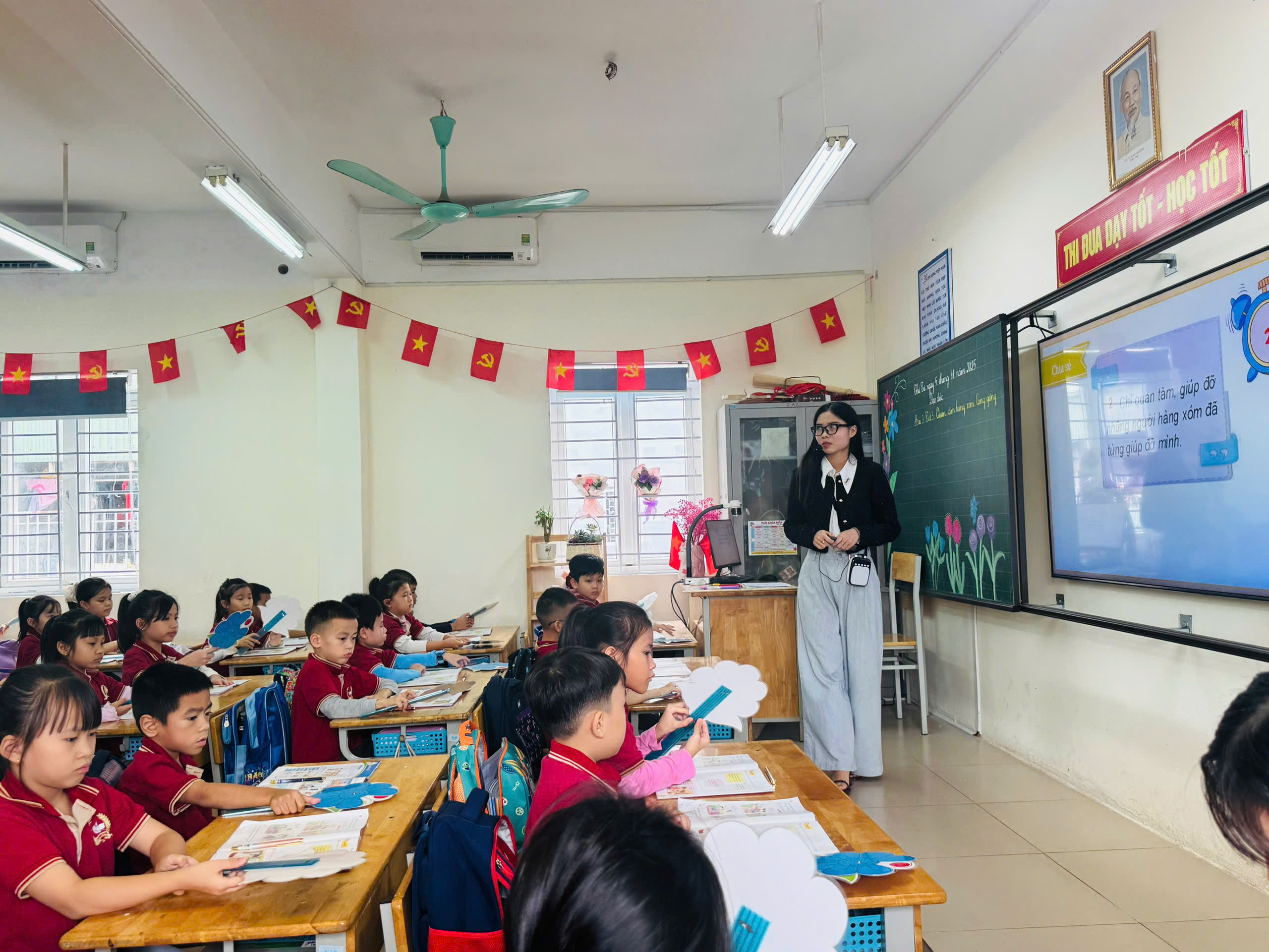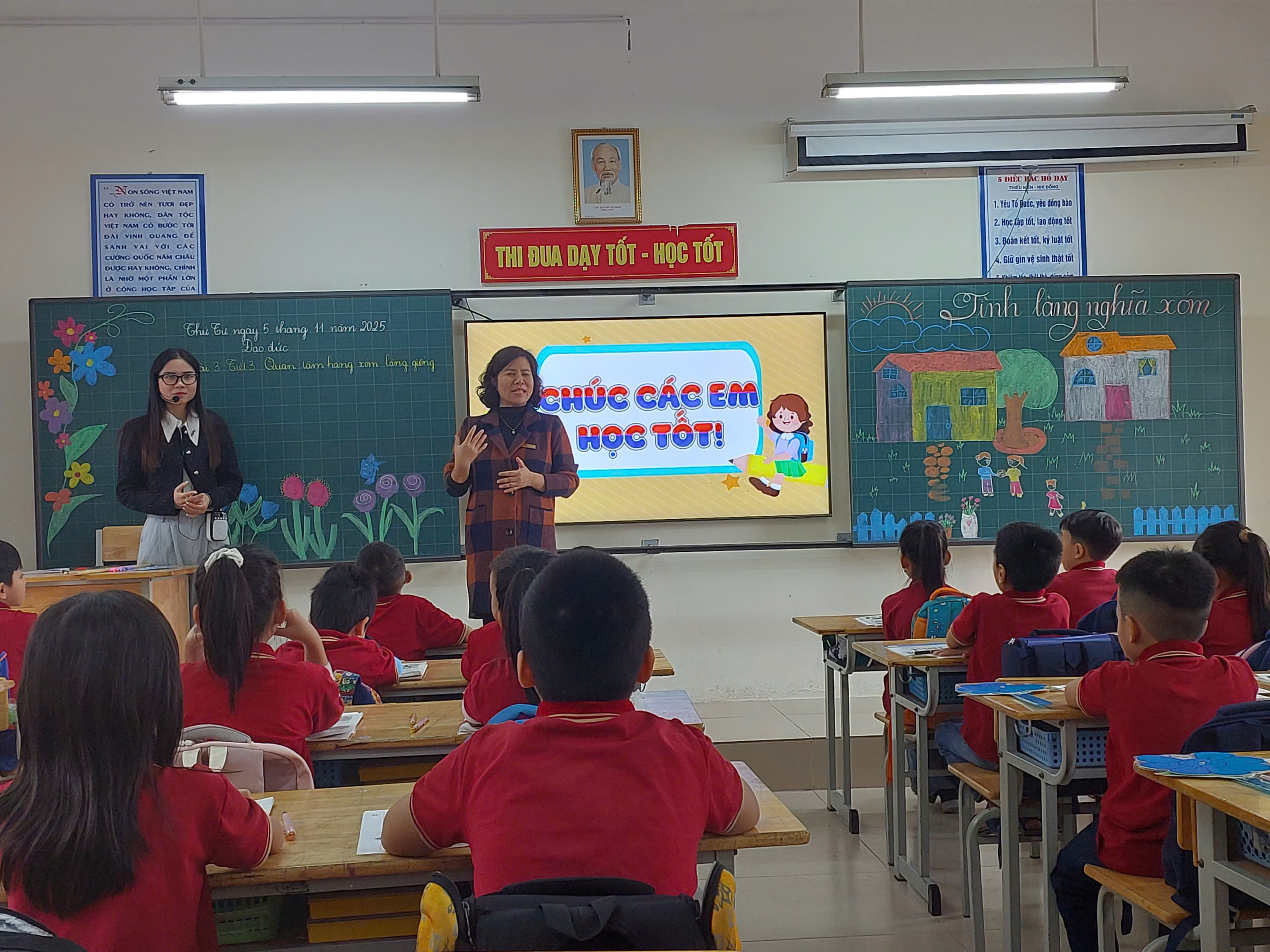 Sáng ngày 05/11/2025, cô giáo Nguyễn Thùy Dương đã thực hiện tiết Hội giảng môn Đạo đức – Bài 3. Tiết 3. Quan tâm hàng xóm láng giềng với sự tham gia của hơn 40 học sinh lớp 3A5. Đến dự tiết Hội giảng có các thầy cô trong Ban giám khảo, cùng các thầy cô trong tổ chuyên môn khối 3. Xin chúc mừng cô trò lớp 1A3 đã hoàn thành xuất sắc tiết Hội giảng.