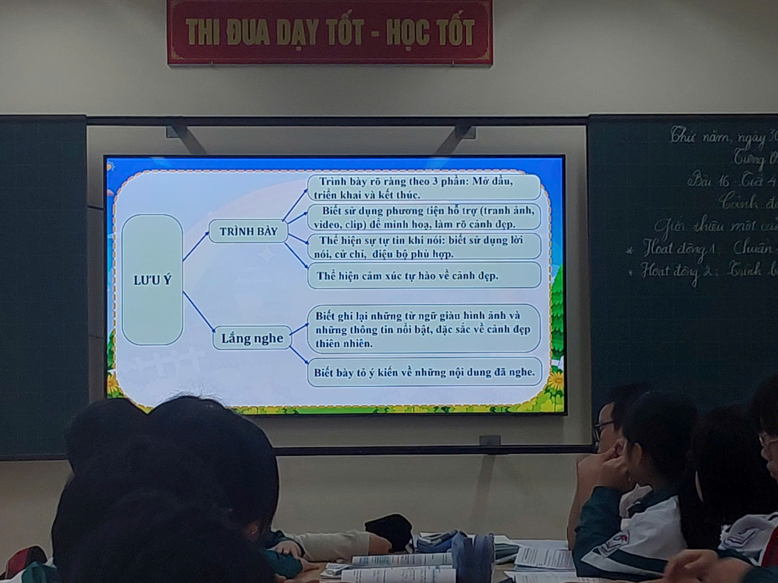 Trong tiết học, cô giáo Đỗ Thị Minh Tâm đã vận dụng linh hoạt các phương pháp và hình thức tổ chức dạy học tích cực, giúp học sinh hứng thú, tự tin khi tham gia các hoạt động nói và nghe. Các em được chia sẻ, trao đổi ý kiến, rèn luyện kỹ năng giao tiếp, lắng nghe và phản hồi hiệu quả.