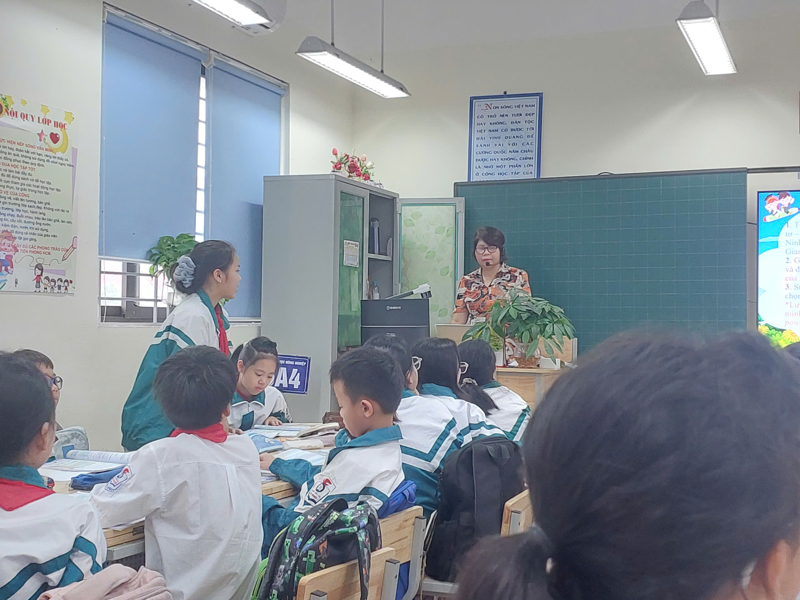 Đến dự tiết Hội giảng có đông đủ các thầy cô trong Ban giám khảo Hội giảng, cùng các thầy cô trong tổ chuyên môn khối 4 và khối 5. Sự có mặt của các thầy cô là nguồn động viên, khích lệ to lớn giúp cô trò lớp 5A4 thêm tự tin, phấn khởi hoàn thành tốt tiết học.