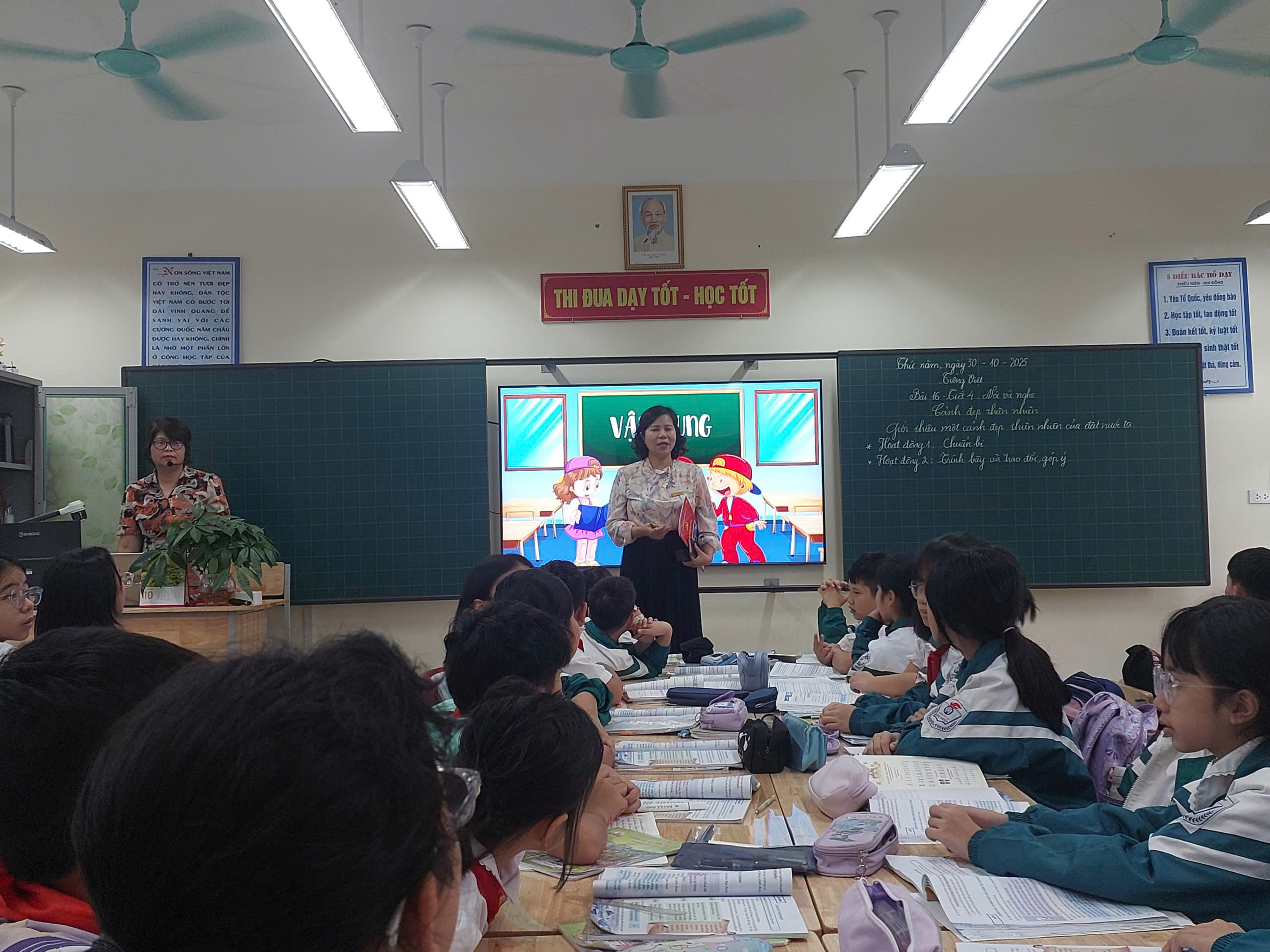 Thực hiện kế hoạch năm học 2025–2026, sáng ngày 30 tháng 10 năm 2025, cô giáo Đỗ Thị Minh Tâm đã thực hiện tiết Hội giảng môn Tiếng Việt – Bài 16, Tiết 4: Nói và nghe tại lớp 5A4. Tiết dạy có sự tham gia học tập tích cực của 50 học sinh trong lớp.