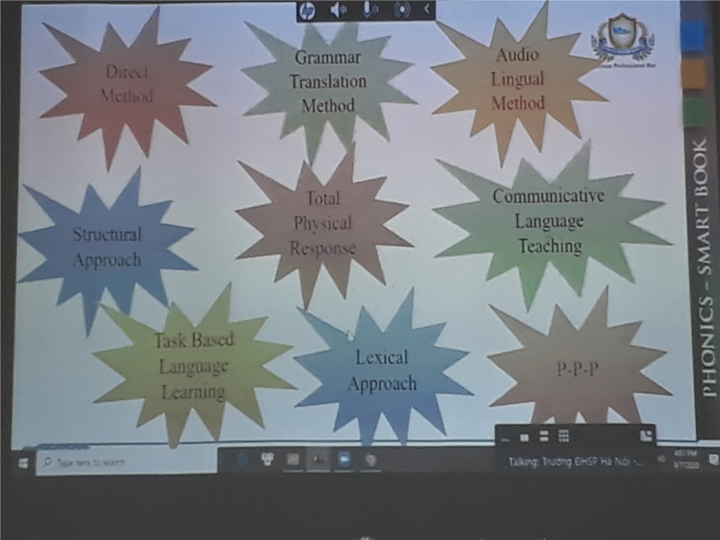 Qua phần trình bày cũng như thị phạm cụ thể của giảng viên, GV nắm rõ được cấu trúc sách giáo khoa môn Tiếng Anh Phonics smart lớp 1 mới, nội dung chương trình và phương pháp giảng dạy. Từ đó các đ/c vận dụng vào việc giảng dạy môn Tiếng Anh trong năm học học 2020 - 2021 cho hiệu quả.