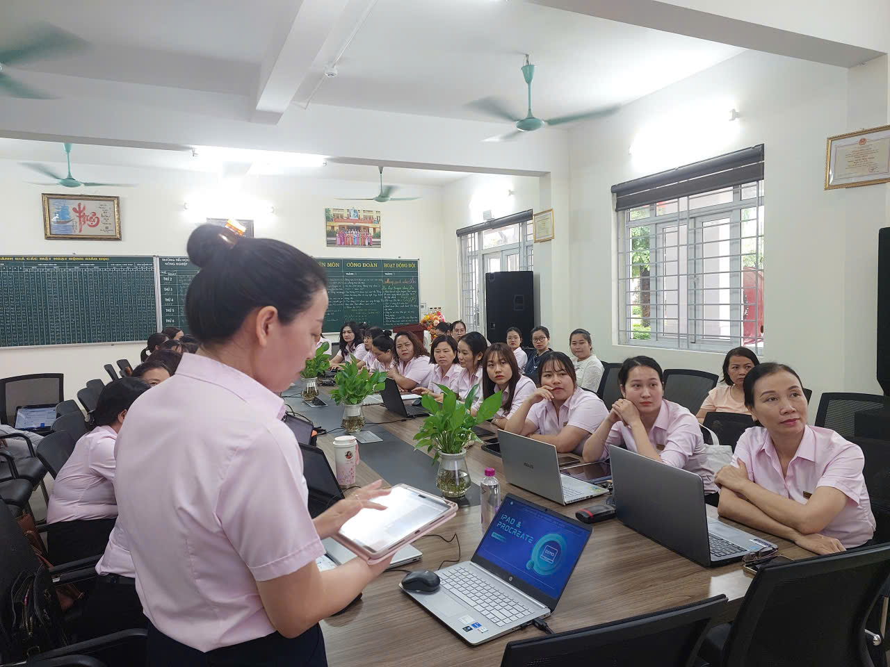 Sáng 19/8/2025, tập thể giáo viên Trường Tiểu học Nông Nghiệp đã có một buổi tập huấn đặc biệt về ứng dụng AI trong dạy học. Mỗi khối đều cử đại diện thuyết trình, chia sẻ những ứng dụng thú vị giúp bài giảng trở nên sinh động và cuốn hút hơn.