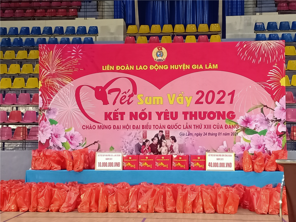 Được sự nhất trí của Thường trực Huyện ủy Gia Lâm, Ban thường vụ LĐLĐ huyện tổ chức Chương trình "Tết sum vầy" Xuân Tân sửu năm 2021, sáng ngày 24/01/2021, tại Trung tâm văn hóa TT&TT huyện Gia Lâm,Ban thường vụ LĐLĐ huyện tổ chức Chương trình "Tết sum vầy" Xuân Tân sửu năm 2021 cho CNVCLĐ có hoàn cảnh đặc biệt khó khăn, mắc bệnh hiểm nghèo. Tới dự Chương trình có đồng chí Tạ Văn Dưỡng - Trưởng ban CSPL LĐLĐ Thành phố, Cán bộ phụ trách cụm; đại diện lãnh đạo các ban LĐLĐ Thành phố; đại diện LĐLĐ các huyện, thị xã trong cụm thi đua số 111; Thường trực Huyện ủy, HĐND. lãnh đạo UBND huyện Gia Lâm; đại diện lãnh đạo Ban dân vận, MTTQ và các đoàn thể huyện, các phòng, ban, ngành huyện; các đồng chí Ủy viên Ban Thường vụ, Ủy viên BCH - UBKT LĐLĐ huyện. các đơn vị tài trợ; đại diện lãnh đạo các cơ quan; các đồng chí CTCĐ cơ sở; các đồng chí CNVCLĐ, con CNVC LĐ được tặng quà có mặt tham dự Chương trình đông đủ.