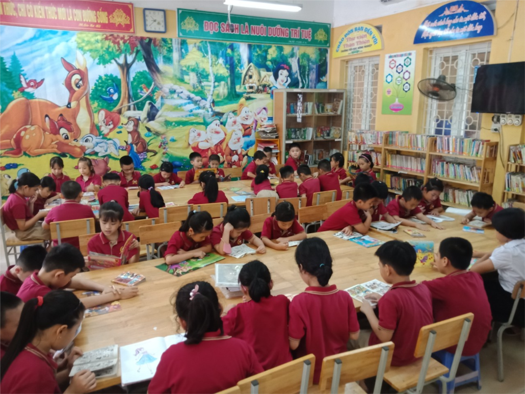 Tiết đọc sách của học sinh tại thư viện nhà trường