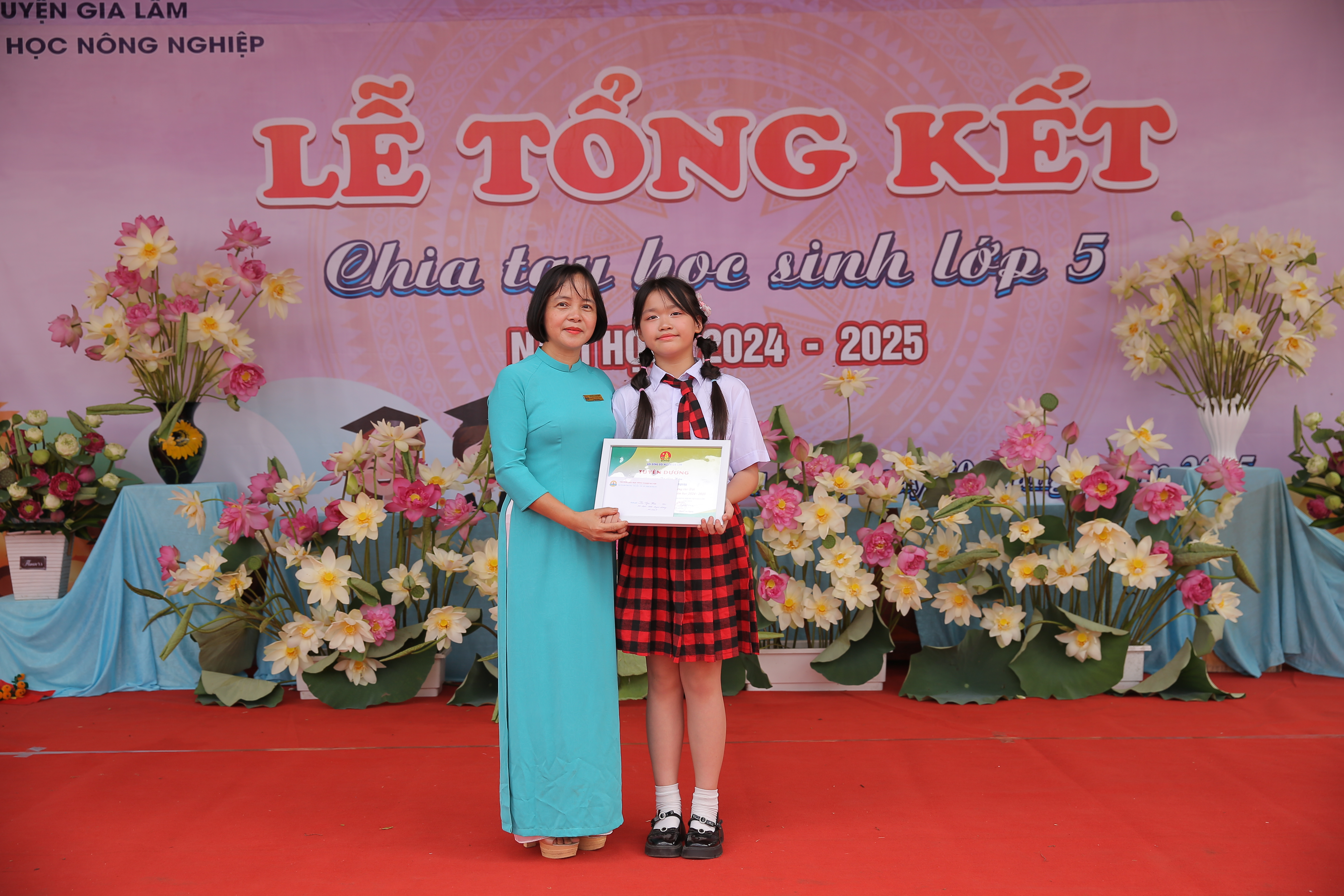 Về dự với buổi lễ tổng kết năm học 2024-2025; có bác Nguyễn Huy Vận - Nguyên Bí thư Đảng ủy thị trấn Trâu Quỳ, Chủ tịch hội cựu chiến binh thị trấn, cô giáo Trần Thị Hương Lan - Bí thư Chi bộ - Hiệu trưởng nhà trường; cô Nguyễn Thị Bảo Hòa - Phó Bí thư Đoàn phường Mỹ Độ; bác Nguyễn Khánh Linh – Trưởng ban đại diện cha mẹ học sinh nhà trường cùng đông đủ các thầy cô giáo, các bậc phụ huynh, các em học sinh nhà trường.