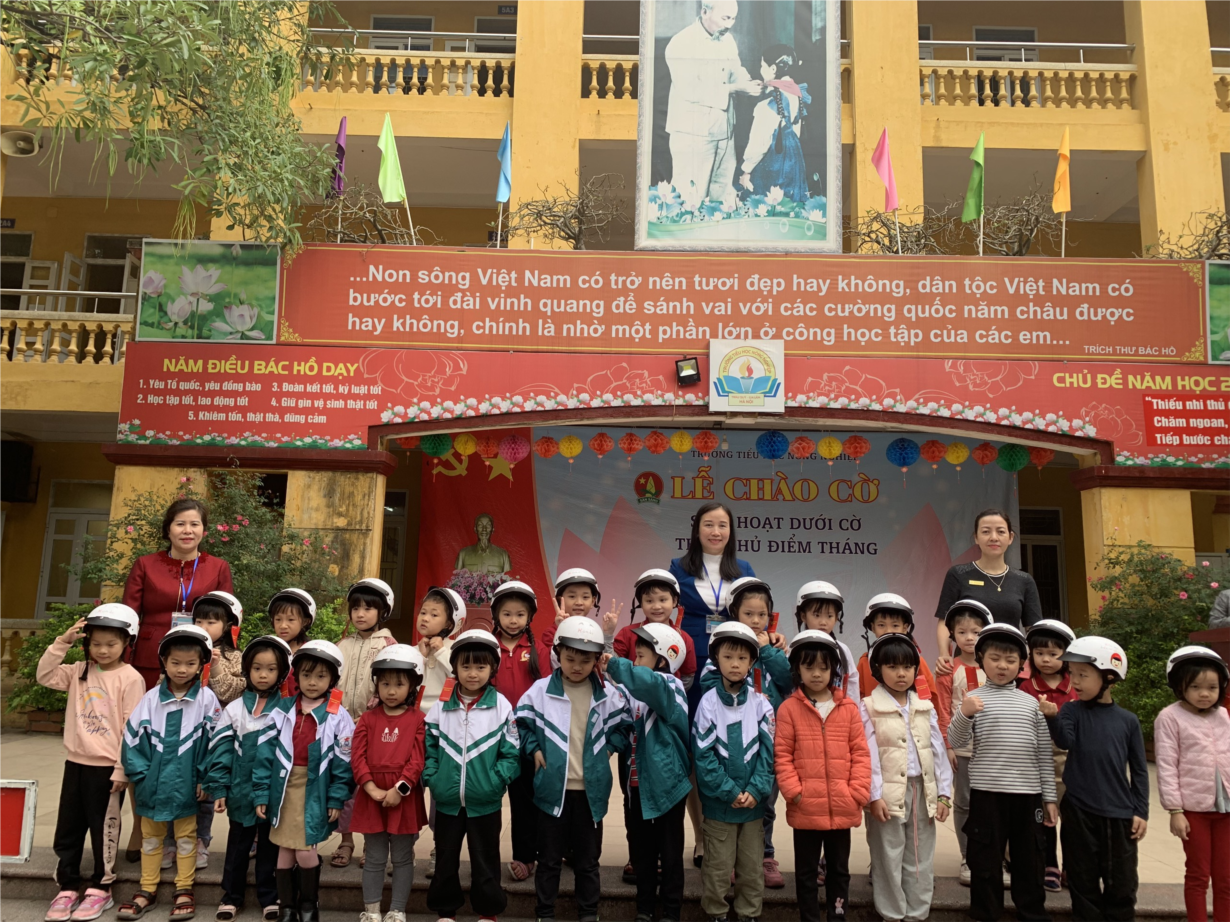 Trong buổi chào cờ thứ 2 ngày 8 tháng 1 năm 2024 , kết hợp với triển khai kế hoạch tuần, văn nghệ trực tuần, 100% các con học sinh lớp 1 được Công ty Honda trao tặng mũ bảo hiểm.