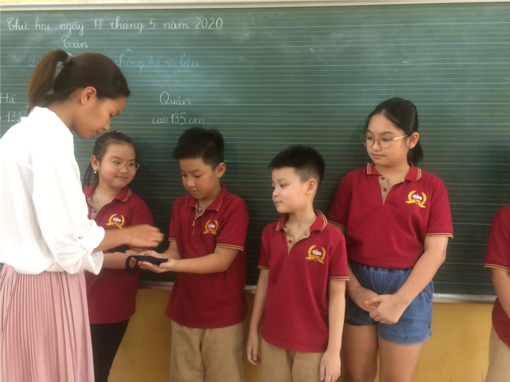 - Tại trường: Hướng dẫn các con các bước rửa tay cơ bản, quy trình rửa tay, thời điểm cần rửa tay. Hướng dẫn các con đeo khẩu trang khi đi đường, khi ra khỏi lớp, khi tụ tập đông người....