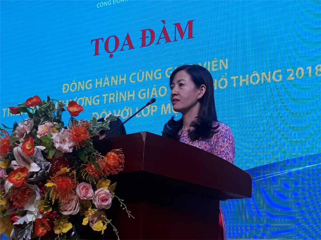 Phát biểu tại buổi toạ đàm, ông Vũ Minh Đức, Chủ tịch Công đoàn Giáo dục Việt Nam cho rằng: Sau hơn 1 tháng triển khai dạy học lớp 1 theo CTGDPT 2018, về cơ bản các trường và GV đáp ứng yêu cầu. Tuy vậy, cũng còn có nơi, có giáo viên còn lúng túng, chưa quen với phương pháp, yêu cầu mới, dẫn đến có cảm giác quá tải. Một số bậc phụ huynh cũng chưa hiểu đầy đủ về Chương trình và SGK mới nên có những ý kiến trái chiều, tạo dư luận không tốt ảnh hưởng tới tâm lý của GV và HS. Chính vì vậy, tọa đàm là cơ hội để các đơn vị và GV nhận diện những vấn đề đặt ra khi triển khai CTGDPP 2018. Đồng thời xác định được các giải pháp để công đoàn tham gia đồng hành với GV trong quá trình triển khai...”