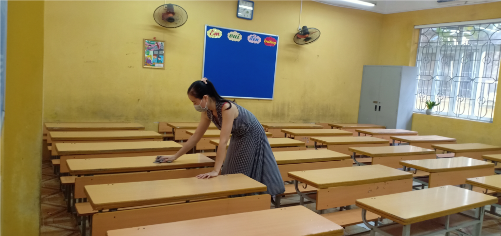 Sáng nay, ngày 28/08/2020, BCH CĐ phối hợp cùng với chính quyền động viên công đoàn viên của nhà trường tham gia tổng vệ sinh toàn trường; tổng vệ sinh các phòng học, phòng chức năng, lau các cánh cửa sổ phòng học, lau phòng học, lau bàn ghế học sinh,sắp xếp đồ dùng dạy học gọn gàng, trang trí lớp học xanh, sạch, đẹp.