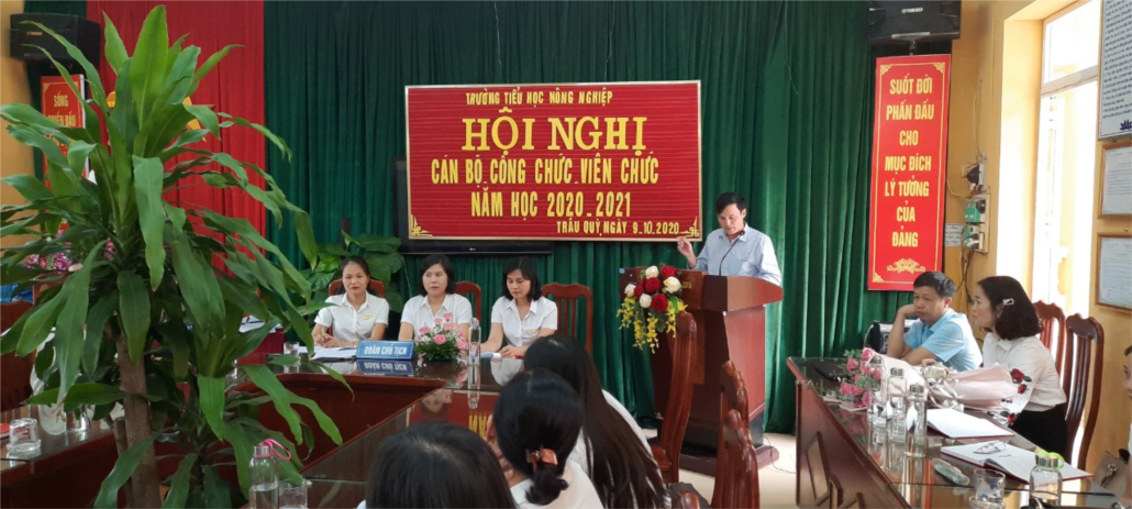 Sáng ngày 09/10/2020, được sự đồng ý của LĐLĐ huyện Gia Lâm, phòng GD&ĐT huyện Gia Lâm, trường Tiểu học Nông Nghiệp long trọng tổ chức hội nghị CB, CC,VC năm học 2020 - 2021 theo các bước: