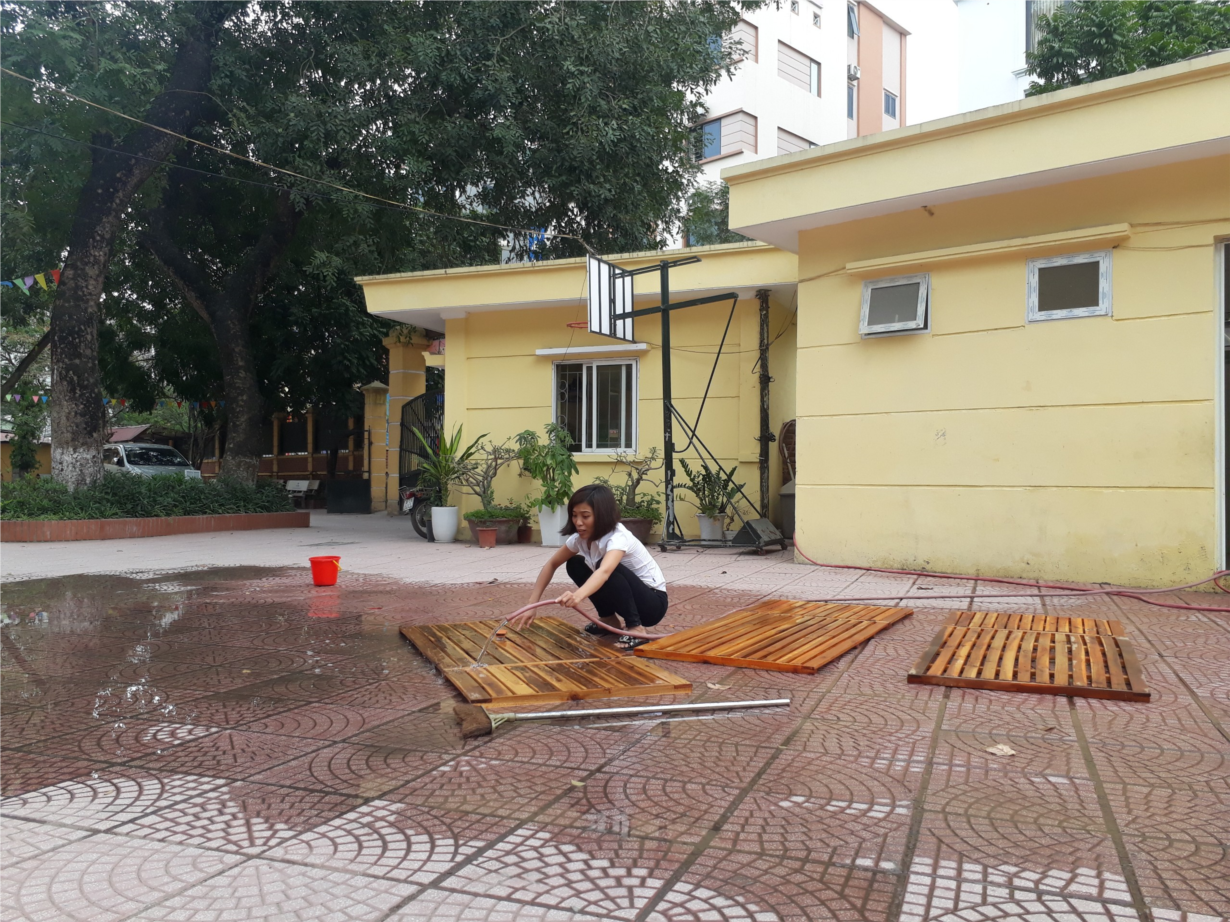 các cô bác cán bộ, nhân viên nhà trường đã hết sức nỗ lực đảm bảo công tác vệ